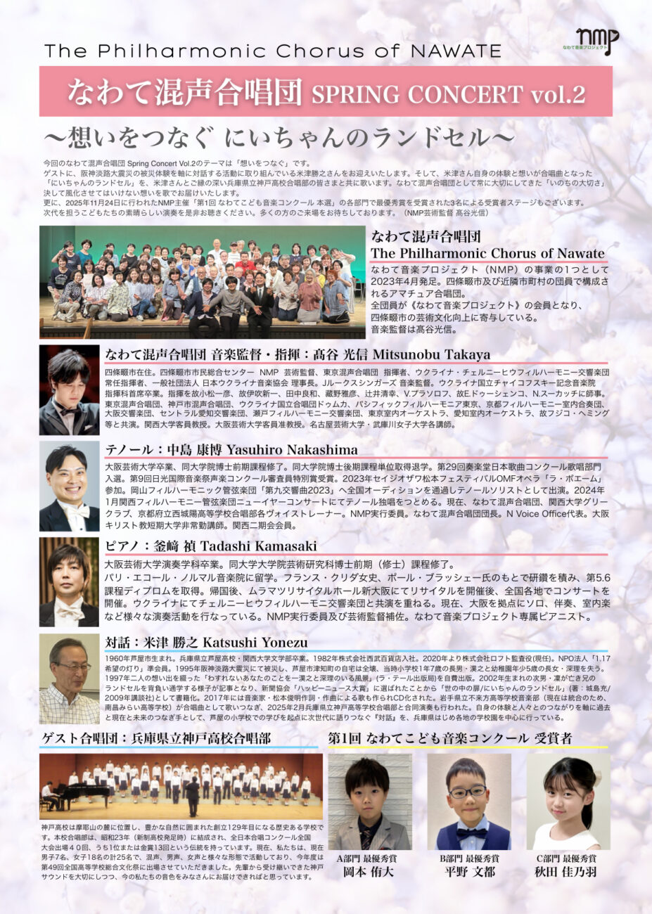 - なわて混声合唱団 SPRING CONCERT Vol.2 〜想いをつなぐ にいちゃんのランドセル〜